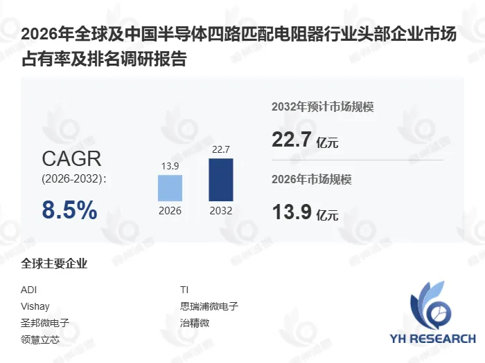 以下内容来自恒州诚思YHResearch出版的《2026年全球及中国半导体四路匹配电阻器行业头部企业市场占有率及排名调研报告》,同时提供英文,日文,韩文等不同语种版本报告。