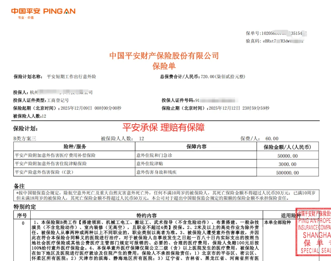 平安短期用工意外险,
