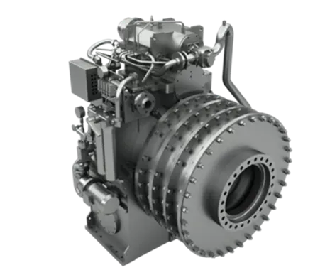 船用变速箱是安装在船舶主推进动力(如柴油机、燃气机或电机)与螺旋桨轴之间的传动装置,用于实现降速增扭、前进/空档/倒车换向和离合控制,使发动机工况与螺旋桨负载相匹配;现代船用变速箱通常还集成推力轴承支撑、PTO/PTI(对外取力/对内取力)接口以驱动辅机或实现混动、完善的润滑与冷却系统,以及扭振减缓结构,以保障工作船、渔船、商船和游艇等多类船舶的高效可靠推进。