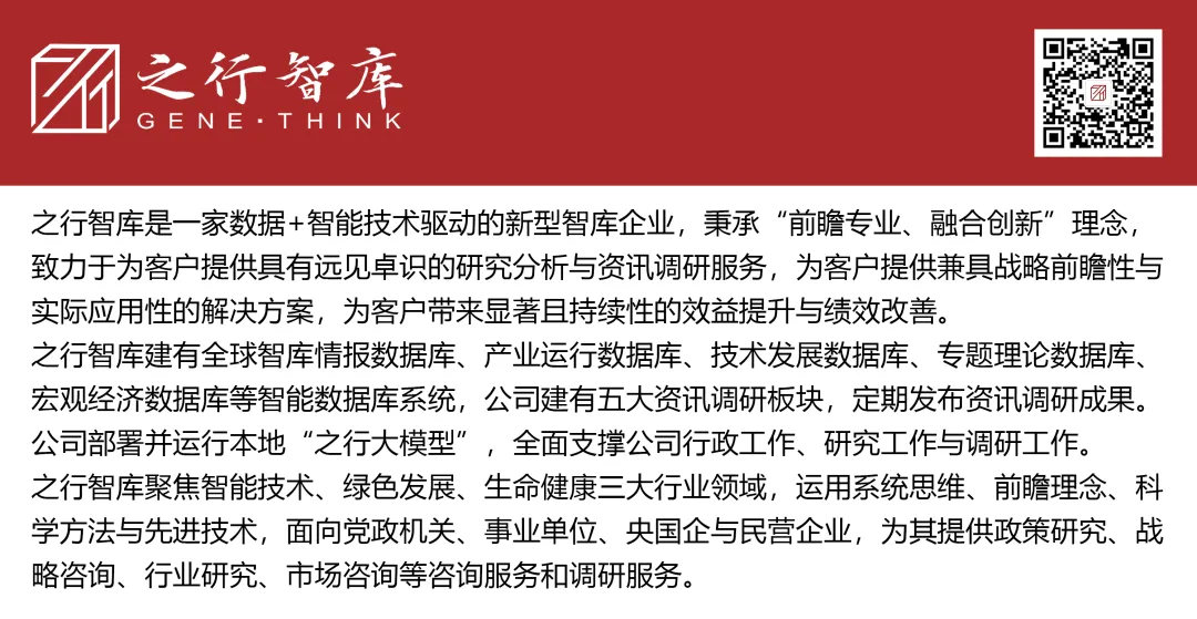 之行智库深耕智能技术领域研究,聚焦前沿技术、无人机、机器人等前沿产业,跟踪政策、技术、市场、企业最新动态趋势,致力于运用大数据分析、产业图谱构建、跨领域专家资源整合及实地调研相结合的方法论,为政府部门、产业界、学术界、投资机构、国际组织及智能技术实践者等各界人士提供定制化研究咨询与资讯调研服务,用于政府决策支撑、企业发展支持及公众视野开拓。