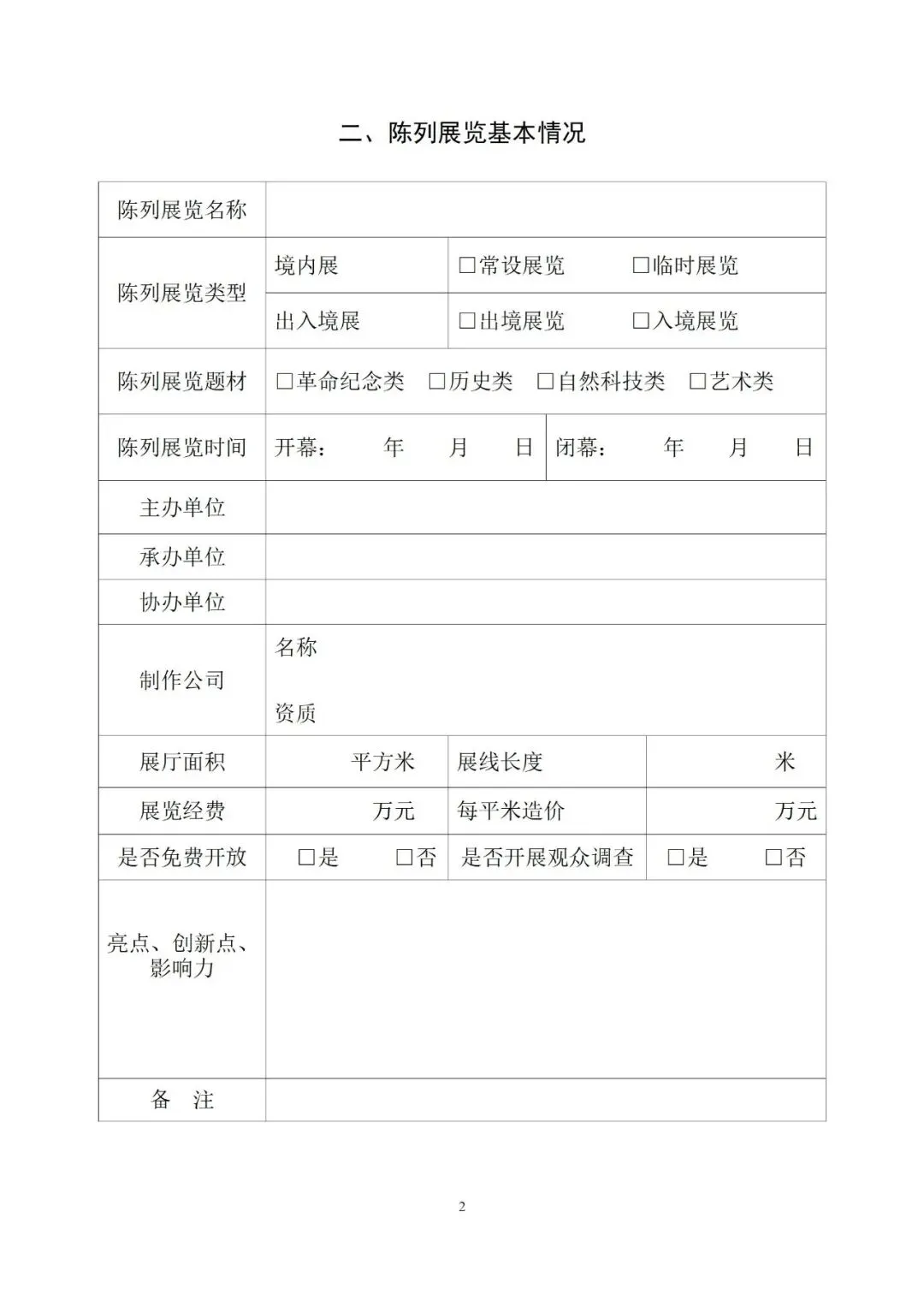 2.《第二十三届(2025年度)全国博物馆十大陈列展览精品推介活动申报书》