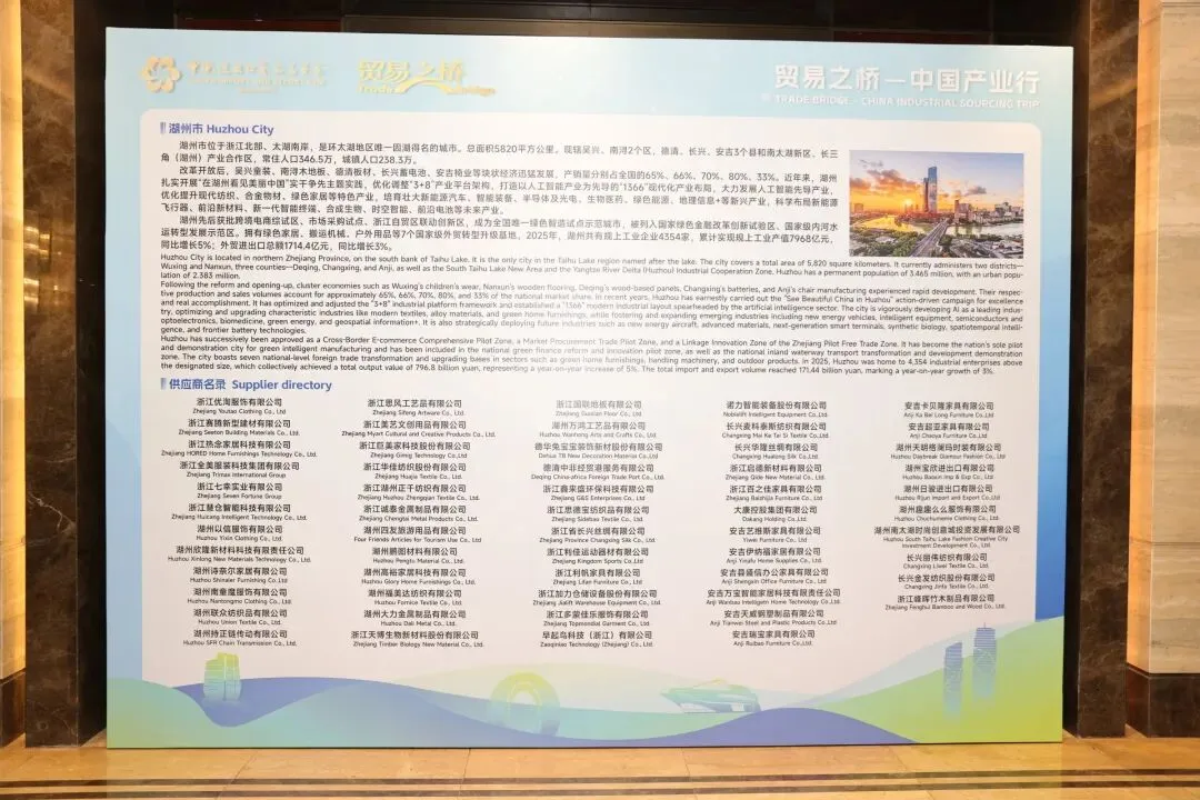 1月29日,由中国对外贸易中心、浙江省商务厅主办的广交会“贸易之桥·产业行”2026年全国首站活动在湖州盛大启幕。这场汇聚阿联酋露露、沙特SACO、印尼长友等世界零售250强企业及23位专业买手的高端供采对接会,为湖州58家优质供应商搭建了直面全球市场的黄金桥梁——而浙江启德新材料有限公司,正是其中代表绿色装饰材料产业的核心力量。