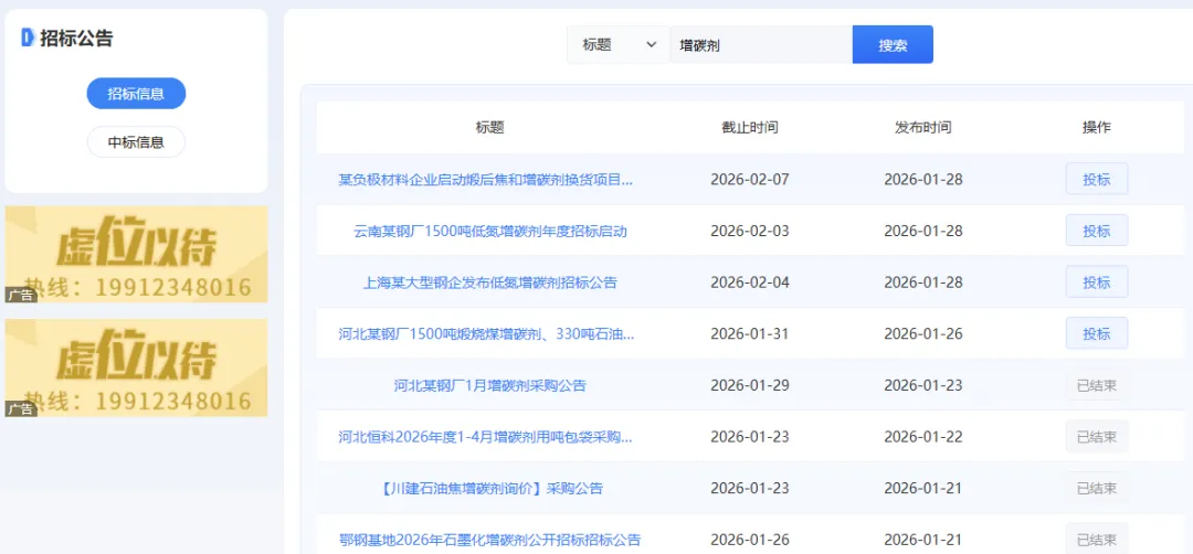 2.1 项目名称:开封平煤新型炭材料科技有限公司针状焦采购入围供应商(二次)