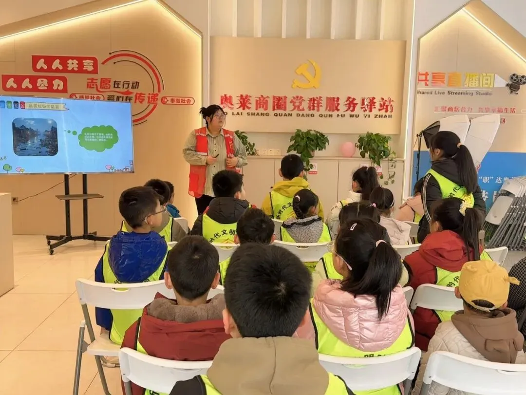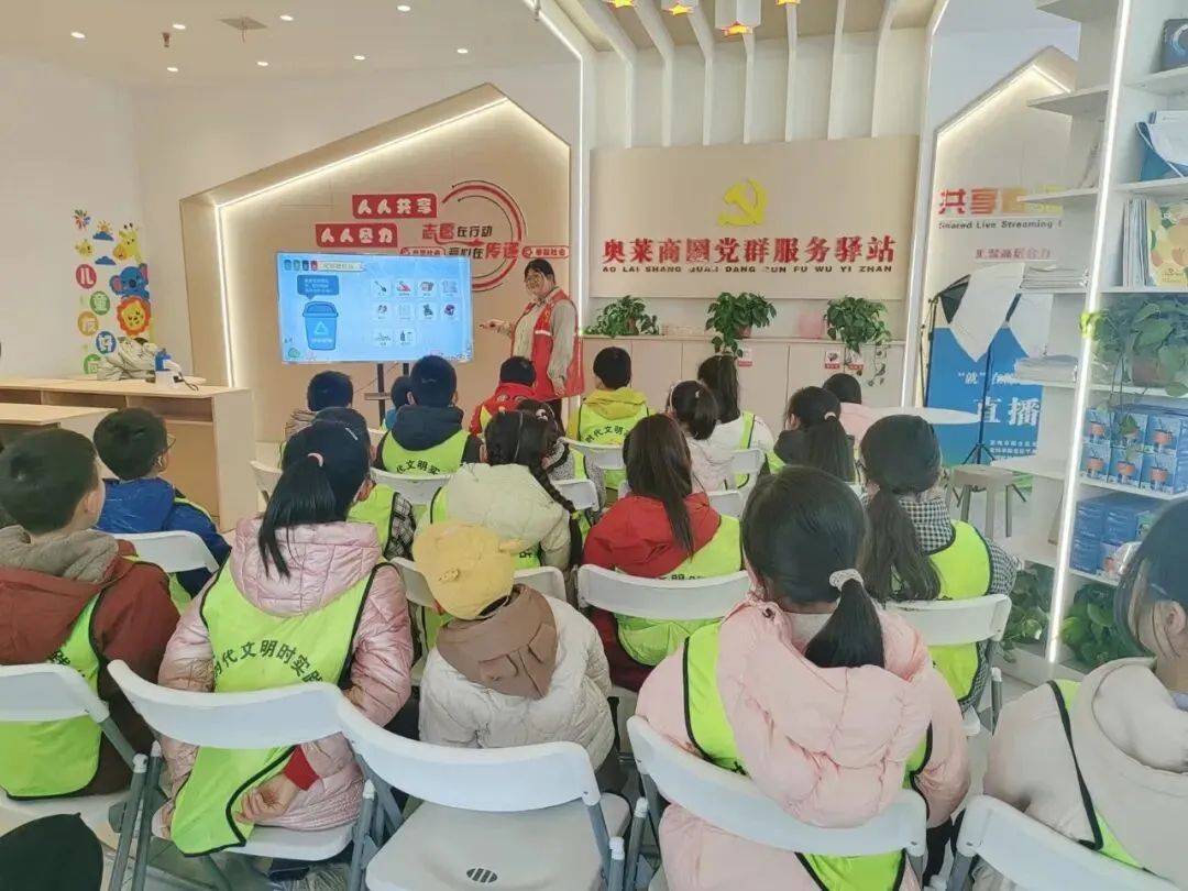 环境卫生整治结束后,孩子们前往奥莱党群服务中心参与垃圾分类知识讲座。志愿者老师以生活化案例为切入点,通俗讲解垃圾分类标准、投放规范及常见误区,并通过互动问答调动孩子们的积极性,让知识点轻松入脑入心。讲座后通过视频及知识问答的方式使孩子们巩固学习,大家均表示将主动践行垃圾分类,争做环保传播者与践行者。