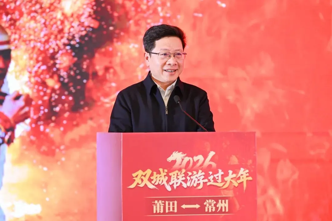 春潮涌动辞旧岁,双城携手贺新春。1月30日,“闽常结对闹新春 双城联游过大年”文旅推介活动在我市举行。常州市委常委、宣传部部长陈志良,莆田市委常委、宣传部部长陈惠黔出席活动。