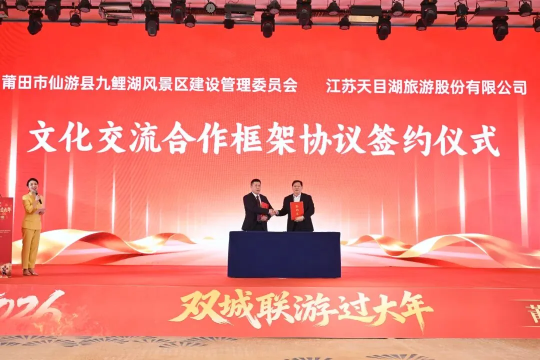 现场,常莆正式建立新春文旅结对关系,天目湖旅游与仙游九鲤湖风景区达成合作,推动江南文化与闽越风情双向赋能。两地将通过资源共享、线路互推、客源互送,丰富市民春节出游选择。