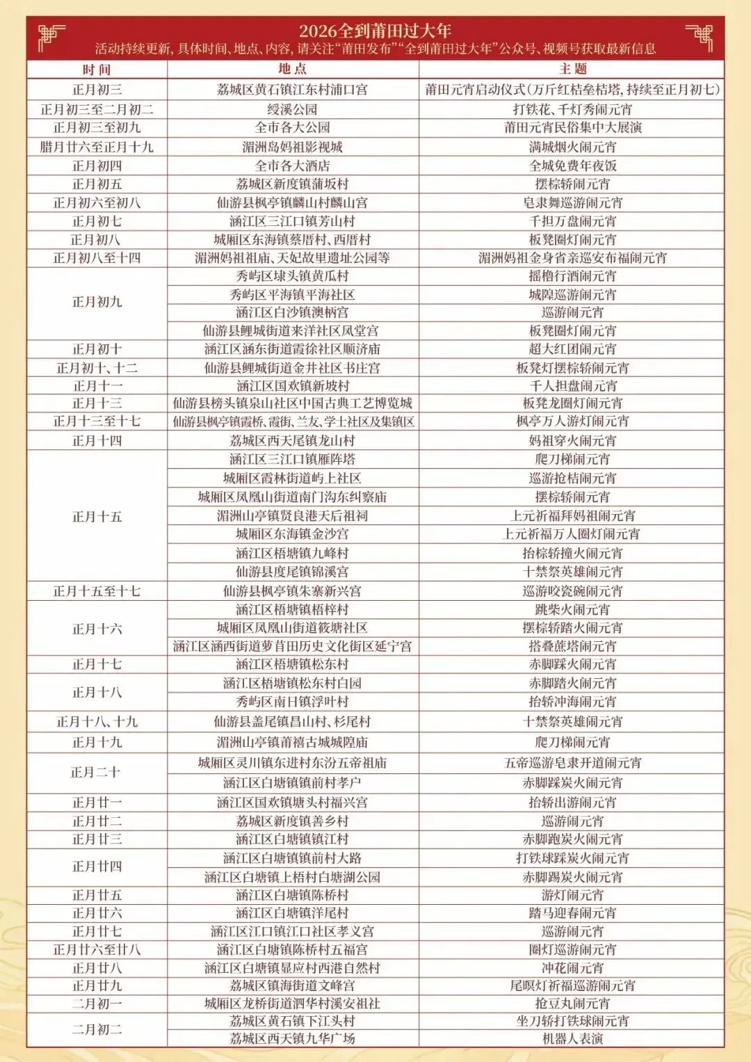 “全到莆田过大年”活动汇总 图源:莆田发布