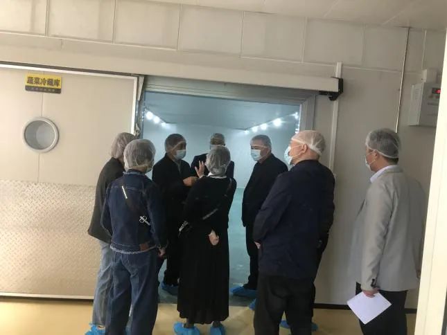 考察团一行参观了中央厨房一层分餐区、二层热厨加工区、蔬菜冷藏库、水产加工区、肉类冷冻库、米仓库、蒸饭区,并详细了解中央厨房对原材料的存储、加工,营养餐的烹饪、打包,以及餐具清洗、消毒等操作流程。东莞波仔食品有限公司董事长董品春与市城投集团董事长李毓权就加工流程、中央厨房服务对象、营养餐价格、食品质量安全等方面进行了深入交流探讨。