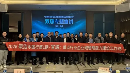 为系统提升重点行业企业应对国内外碳约束的能力,推动区域绿色低碳高质量发展,由宣城市发展和改革委员会、宣城市工业和信息化局、宣城市工商业联合会、中英碳治委员会、宣城市汽车零部件行业协会联合组织的 “宣城市重点行业企业碳管理能力建设工作坊” 于2026年1月14日下午成功举行。来自全市钢铁、水泥、汽车零配件、化工、新材料、电池等重点行业及供应链企业的代表齐聚一堂,共同探讨“双碳”目标下的企业碳管理升级路径。