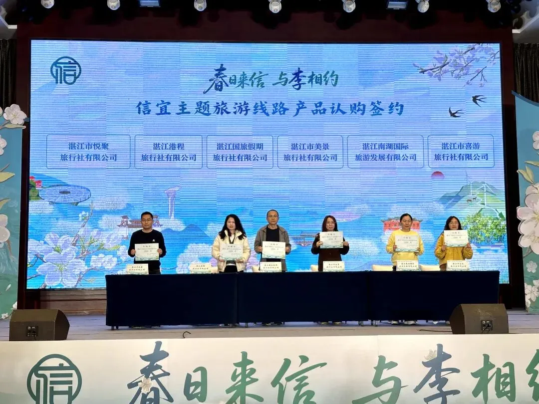 活动现场,湛江12家重点文旅企业与信宜相关单位签订2026年信宜主题旅游线路产品认购协议,累计认购旅游名额12000个。在两地领导嘉宾的共同见证下,“春日来信 与李相约”2026年“万人游信宜”活动正式启动,标志着湛信两地从“资源互补”走向“市场共建”的实质性跨越。未来两地将在线路互推、客源互送等方面开展深度合作。