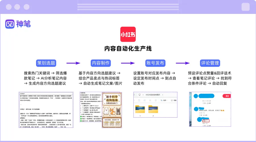 做小红书内容营销,拼的是谁的效率更高、谁的决策更准、谁能产出更多高质量内容。有了神笔AI自动化智能体的加持,从趋势预测到内容生成,从效果分析到优化迭代,助力品牌在竞争中抢占营销先机!