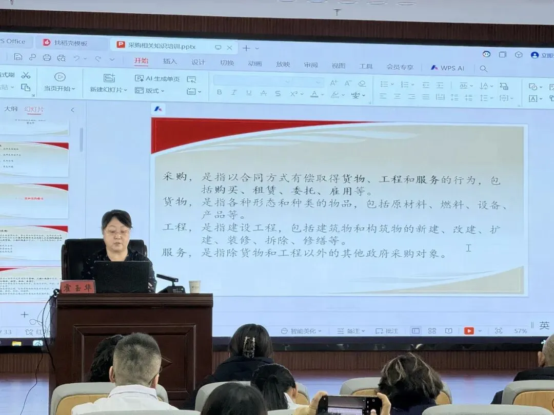 本次培训特邀州妇幼保健院采购办霍玉华老师莅临授课,课程紧密结合医院采购工作实际,以“夯实合规基础、规范操作流程、防范廉政风险”为核心,从政府采购概念界定、采购平台应用、全流程规范操作及常见问题破解四大维度展开系统讲解,助力参训人员全方位、深层次掌握采购工作关键要点。在政府采购概念解析环节,霍玉华老师精准明确了医院采购工作的法定要求与合规底线,深入阐释了采购工作在优化医院运营成本、强化医疗服务保障、提升资源配置效率中的核心作用,进一步强化了参训人员的责任意识与合规意识。采购流程讲解中,针对医院货物采购、服务采购、工程采购等不同类型项目,系统梳理了从需求提报、计划编制、招标采购、合同签订到履约验收的全链条流程,清晰界定了各环节责任主体、办理时限与操作标准,有效厘清了采购工作中的权责边界,为实操层面提供了清晰指引。