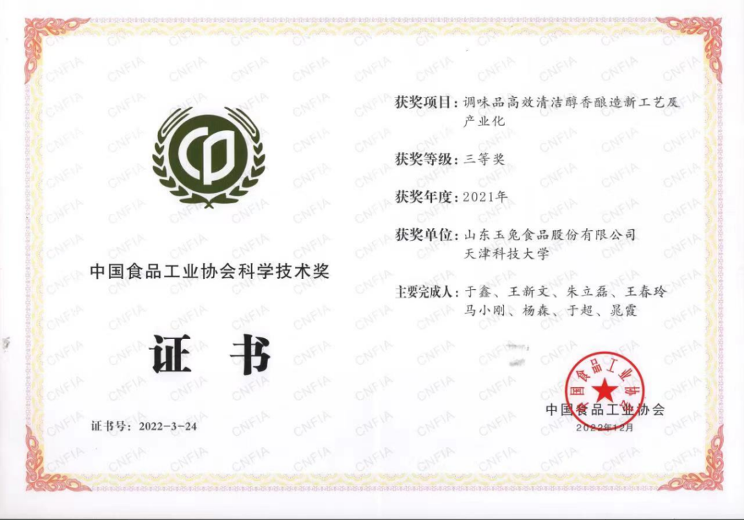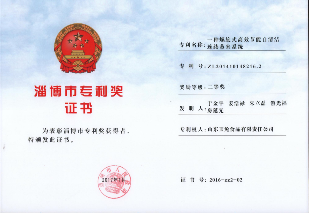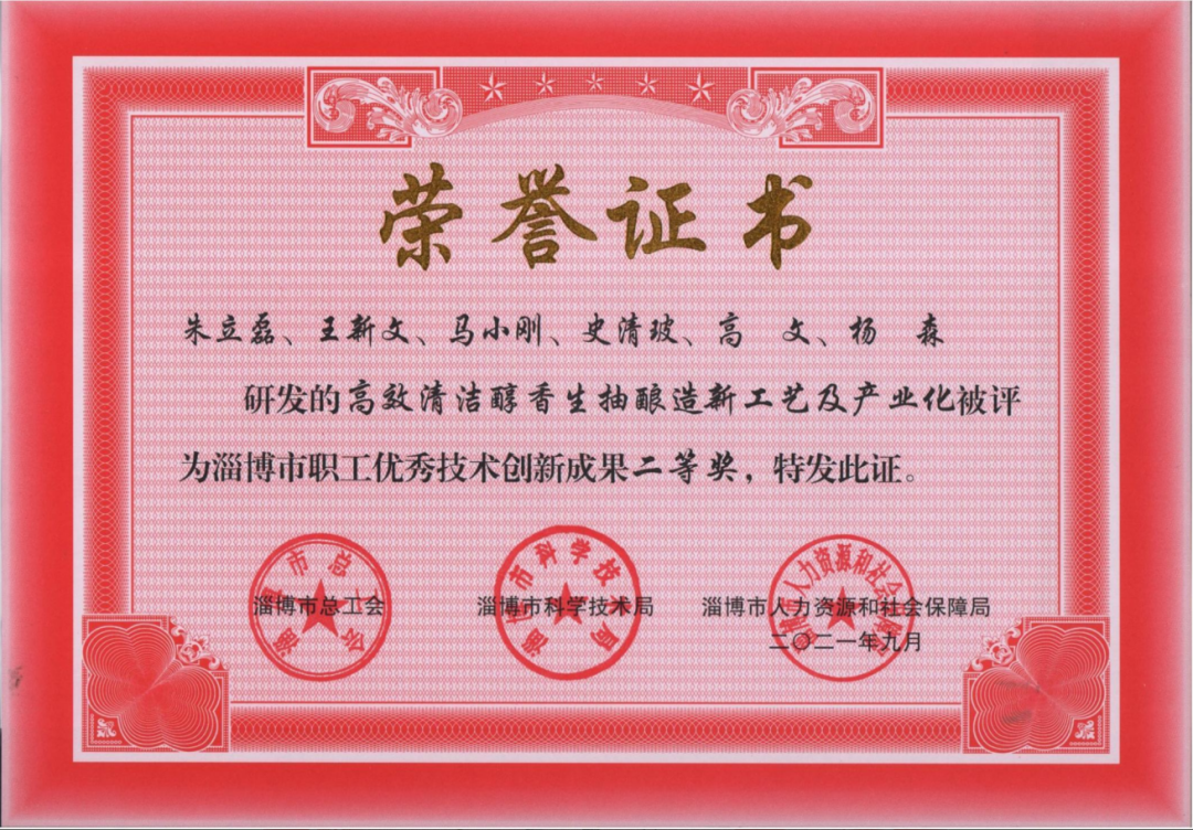 公司先后荣获中国食品工业协会科学技术奖三等奖、山东省科学技术学会科技奖一等奖、山东省专利三等奖、山东省优秀节能成果奖、山东省食品行业鲁食包装设计大赛优秀奖、淄博市重大科技创新成果一等奖、淄博市重大节能成果奖、淄博市高价值专利5项、淄博市“四·一”工程技术创新项目一等奖等荣誉、淄博市职工优秀技术创新成果二等奖。