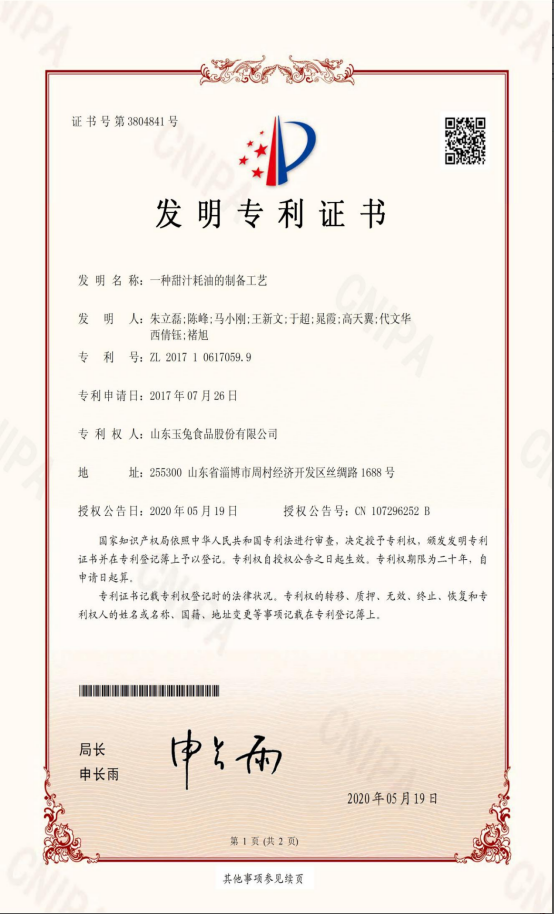 公司不断利用高新技术改造提升传统产业,先后荣获中国名牌、中国驰名商标、中华老字号、全国知识产权优势企业等荣誉称号,是中国调味品著名品牌50强、山东省食品制造综合实力20强、山东省专精特新中小企业、山东省循环经济示范单位、山东省农产品加工示范企业、山东省农业产业化重点龙头企业、山东省高端品牌培育企业、山东省放心消费示范单位,国家高新技术企业、中国专利山东明星企业。