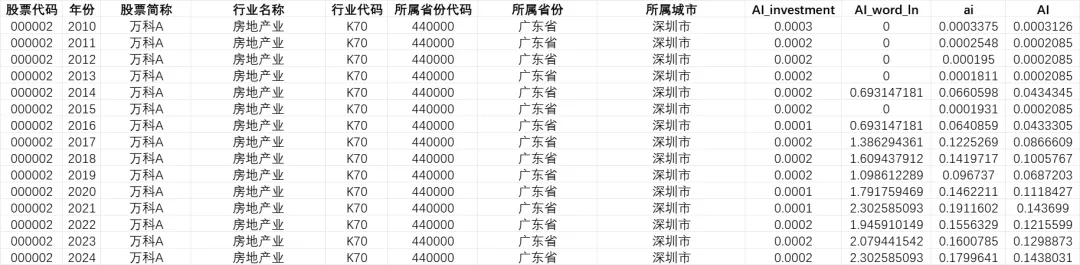 为了更全面、客观地衡量企业的人工智能应用水平,我们构建了一个综合指标(AI),具体如下: