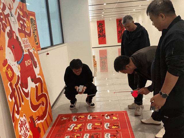 大家兴致勃勃地穿梭于各活动体验项目和游戏之间,有的屏息凝神准备投壶,有的紧盯沙包稳稳投掷,有的专注垂钓比拼技巧,有的挥毫泼墨书写新春祝福,“马年纳福”“聚力前行”等一幅幅寓意美好的春联跃然纸上……
