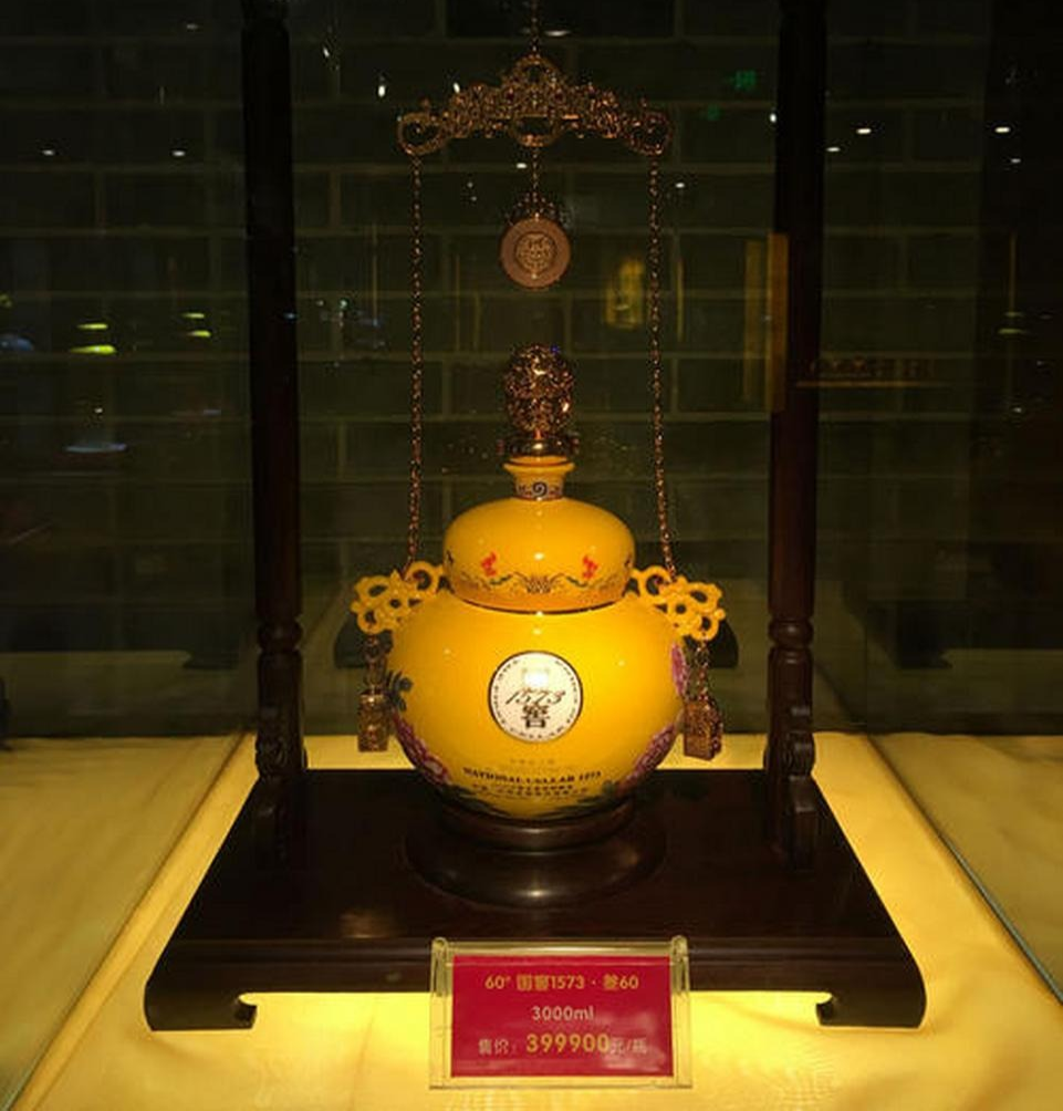 国窖1573是泸州老窖的系列酒之一,源于明朝万历年间的“国宝窖池”,是泸州老窖特定的VIP顶级奢侈高端定制白酒,三公斤装,每瓶售价39.99万元,在当时也掀起了不小的轰动。