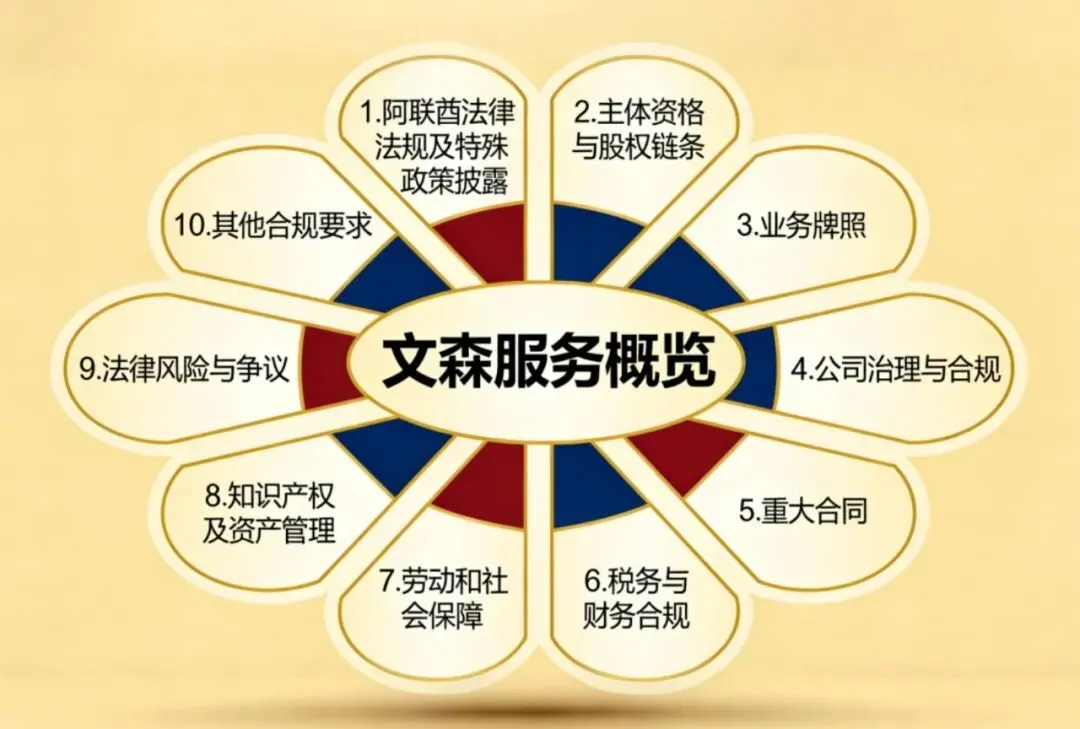 我们将查阅阿联酋政府及相关机构文件,分析阿联酋主体存续情况及是否处于良好状态(good standing);查阅阿联酋主体自设立日起历次股本变动、股东变更、董事任免情况,分析股份发行、缴付情况,以及股权是否存在负担或设置特殊权利;核查股东适格性;验证股权链路是否满足权属清晰等。