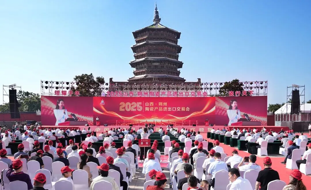 塔立千年迎盛会,瓷行万里邀群英。8月25日,2025山西·朔州陶瓷产品进出口交易会在应县开幕。