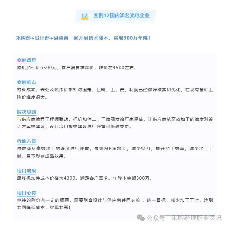 学习的降本知识、工具、方法不是最重要的,因为网络AI发达的今天,有些内容很容易获得,更重要的是来学习如何解决降本落地过程中,遇到的具体难题,以及如何把各方阻力,变为助力,如何联合各部门、客户、供应商一起降本?