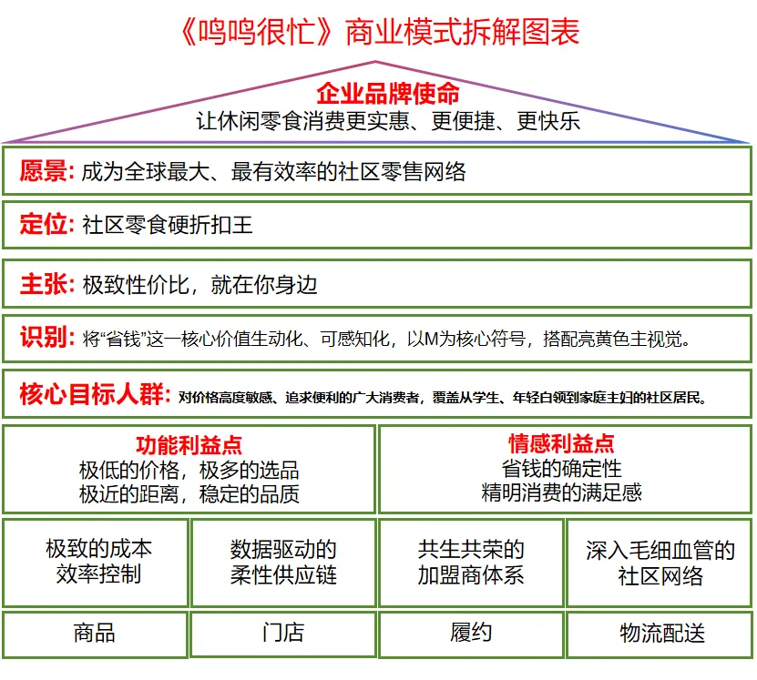 翻开鸣鸣很忙的企业价值品牌屋,“让休闲零食消费更实惠、更便捷、更快乐”的品牌使命清晰可见。这一朴素的承诺恰恰解释了为什么它能在中国广阔的消费市场迅速扩张。