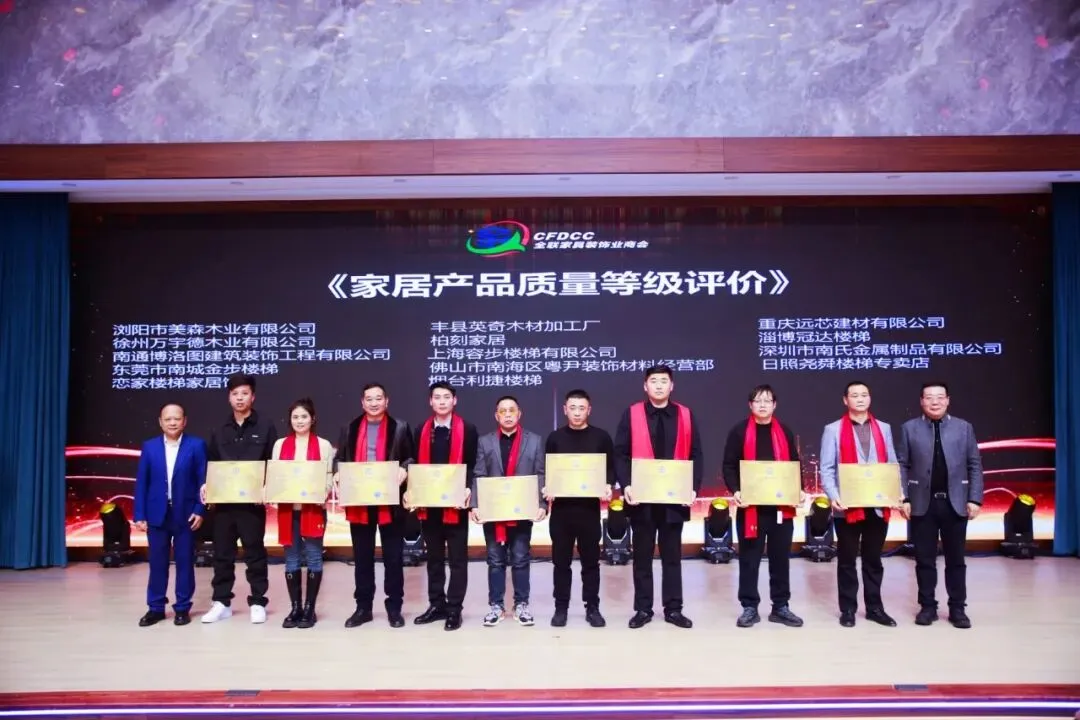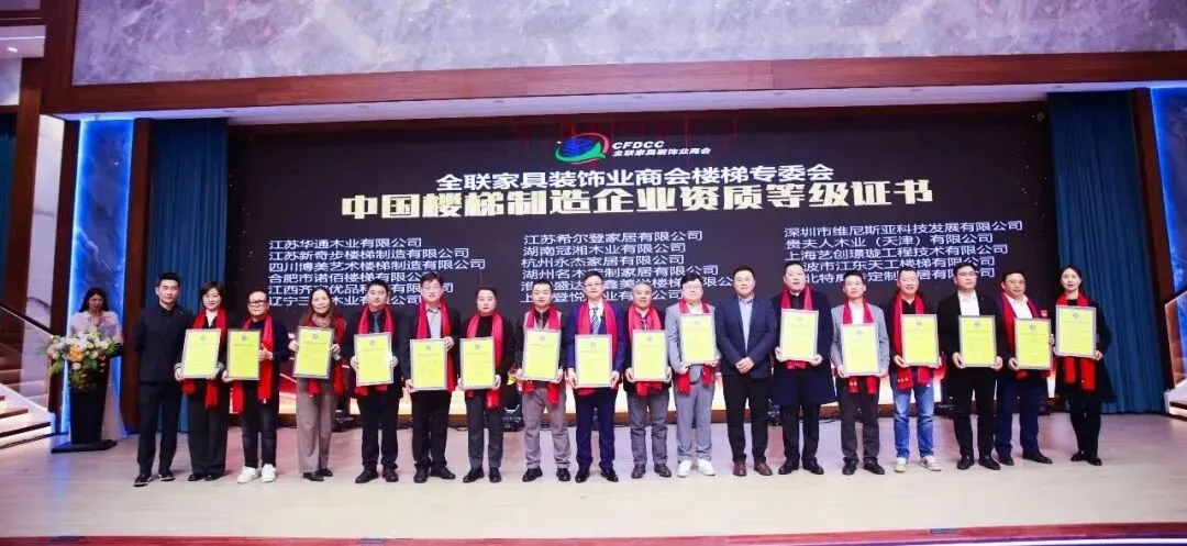 荣誉认证环节,大湾区楼梯协会成员企业表现抢眼、硕果累累,成为年会最大赢家之一,各类重量级荣誉尽收囊中,用实力彰显“湾区匠心”与制造硬实力。在企业信用、质量与服务认证方面,大湾区协会成员企业同样表现突出,多家龙头企业顺利通过严苛的多维度评估,斩获家居行业企业信用、产品质量、服务能力3A等级评价——这一认证被誉为企业市场准入的“信用通行证”,要求企业在合法合规经营、财务健康、履约能力、管理规范等方面达到行业顶尖水平,此次获奖标志着大湾区楼梯企业已建立起与国际接轨的品质管控与服务体系。天工楼梯、齐家艺树楼梯、雅致楼梯还成功获得《中国楼梯行业制造企业资质认证》证书,进一步彰显了其在生产标准化、技术专业化方面的硬实力。具体来看,各细分领域荣誉分布清晰,尽显大湾区楼梯产业的全面优势,每一项荣誉都对应着企业的深耕与坚守:获得“家居行业企业信用AAA级评价”的协会相关单位有雅致楼梯、齐家艺树楼梯、天工楼梯、衡正钢构、酷享铝业、百运来楼梯、景烁玻璃、良玉世家、梯帮帮、中国楼梯网等。获得“家居行业企业产品质量AAA级评价”的协会成员企业包括齐家艺树楼梯、雅致楼梯、天工楼梯、振刚玻璃、绿捷楼梯、金伯爵楼梯、墅也楼梯等;荣获“家居行业企业服务能力3A等级评价”证书的有酷享铝业、衡正钢构、良玉世家、百运来楼梯、景烁玻璃、梯帮帮、中国楼梯网等。