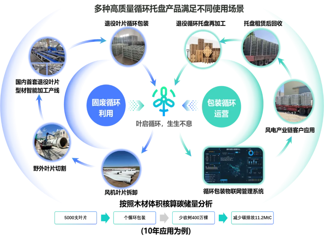 瑞和控股不仅提供环保合规的叶片处置服务,更将每一片退役叶片转化为低碳循环包装产品,赋能全社会减排,实现“风电绿色退役”与“物流绿色包装”的双重减碳效应。