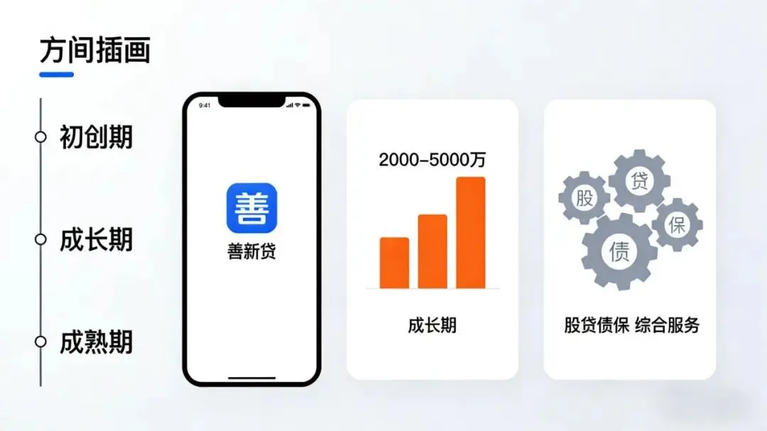 •快速成长期:发力知识产权质押融资、银行成长型信贷产品,适配扩张资金需求。