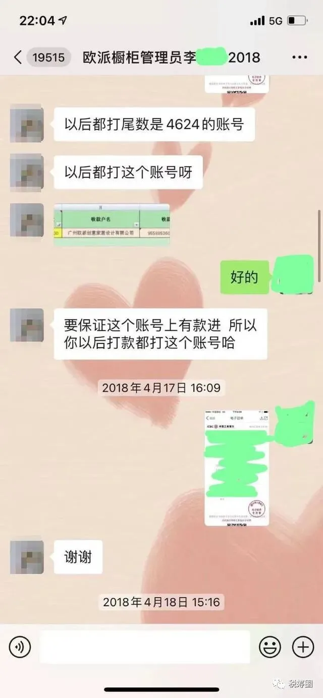 杨峰2018年与欧派家居管理员的微信聊天记录中,管理员要求“安排汇款进创意公司(广州欧派创意家居设计有限公司)账号”。杨峰告诉记者,“管理员指名让我汇进非欧派上市公司的账号。”