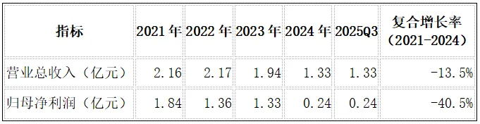 2025年前三季度,公司实现营收1.33亿元,同比下降6.9%;归母净利润2397万元,同比下降81.8%。