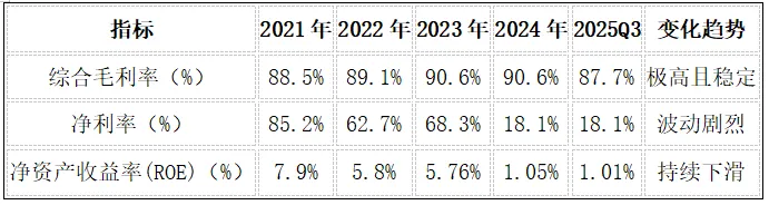 公司的盈利能力呈现出“高毛利、低净利”的特点,这是其商业模式和投资策略共同作用的结果。