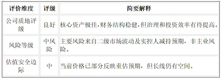 结论: 公司的内在价值(NAV)保守估计在85亿元以上,乐观估计可达115亿元。当前市值81.64亿元,表明公司估值仍处于被低估状态,存在明显的安全边际。