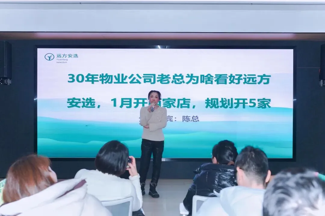 第四位分享嘉宾是我自己了,我分享了自己三年来在远方走的路,为什么三年前服务商费用这么低的情况下,我还乐意屁颠屁颠的选择远方呢,因为这是一份能给我带来幸福的事业。我的服务商大多数都是在我工作室品鉴美食时被种草,然后一点一点的吃在远方,最终成为铁粉,也想和我一起分享健康, 这样吸引过来的朋友都是长期主义者。第五位分享嘉宾是30年物业公司陈总,20多年的持续创业者,成功开了8家公司。她说远方安选真的一个非常有潜力的项目,她做安选是为了3年后给跟随她的几百位员工去链接去积累,因为安选投入小回本周期短,人人都可以简单的开始,还可以通过它积累自己的私域。1月她开了2家店中店,她说未来还要再开5家。因为好的位置正在被抢占,一定要快速行动快速复制,她的美容美发的嫁接远方非常成功,也是差不多一个月回本。第六位分享嘉宾是房地产销售总监开的安选专营店,目前店是她爱人在经营,小店选址很成功,听话照做,参加学习,不到2个月做了快30万营收,简直太惊喜了,来听听邓店长的分享,她们做对了什么?第七位分享嘉宾小曾,原来是上班族,厌倦了朝九晚五的生活,就想和老公一起开个小店,有缘遇见了远方,来我们团队伙伴开业店里帮了几天,对安选整个开业流程有个详细了解,看到吸引了那么多街坊邻居来关注打卡,于是也想开一家安选店。和老公商量好后,立马开干,去总部学习,回来一一落地,每天跟培训跟播,非常认真,服务也很好,所以三个月就回本了。7位分享嘉宾,每个人来自不同的行业,不同的背景,但大家都选择了远方安选,而且目前都拿到了非常不错的结果,可见这件事的商业模式是确定性的。最后一个环节是请3月8号锁定安选店地址的伙伴上台领取总监们准备的马到成功贺礼,现场有13位老板锁定了地址,准备开年后3.8号开干。如果你也心动了,现在来加我私聊,3.8号开业目前还来得及,再过一周真的就不好说了。