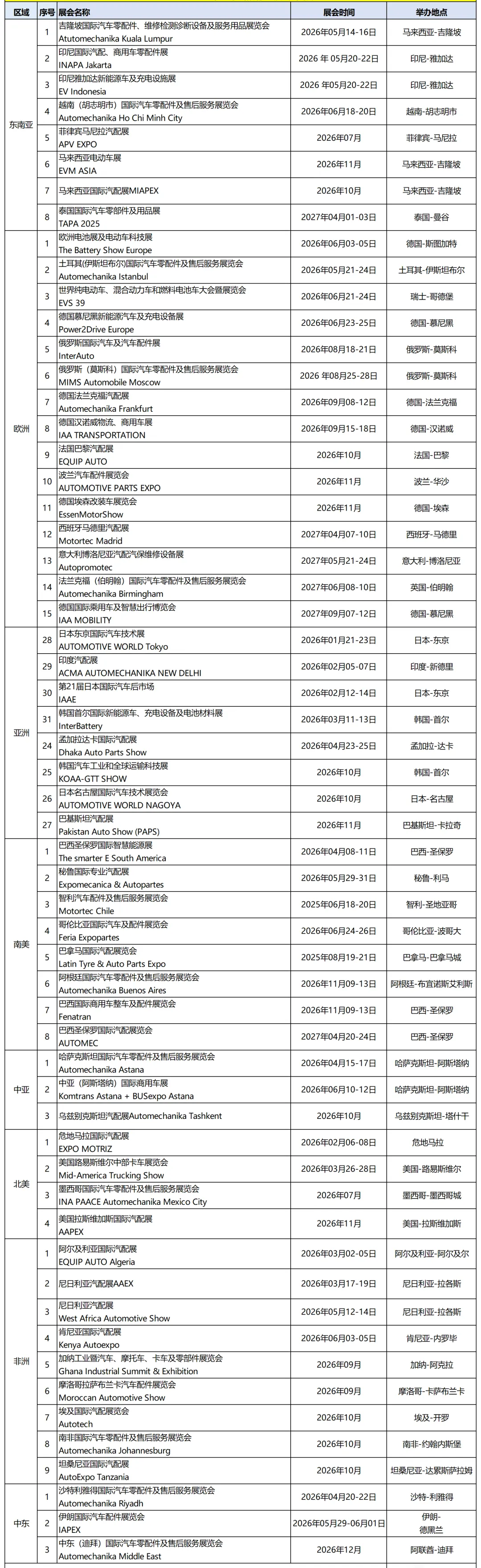 汽车零部件及组件、电子及智能网联、配件及改装、维修与诊断、机油及机车化学品、汽车清洗与保养、轮胎及轮毂、移动出行服务及自动驾驶、信息处理、导航设备、监控系统、车队管理系统、跨境及物流服务、汽车整车。