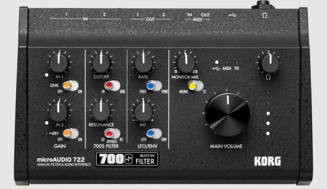 Korg近日发布了microAUDIO系列音频接口,包含microAUDIO 22和microAUDIO 722两款产品。它们采用紧凑的USB-C设计,适用于桌面创作、移动录音以及网络直播等多种工作场景。两者均提供2进2出的专业级音频转换能力。值得一提的是,microAUDIO 722还搭载了一个从经典合成器miniKORG 700s传承而来的全新滤波器。