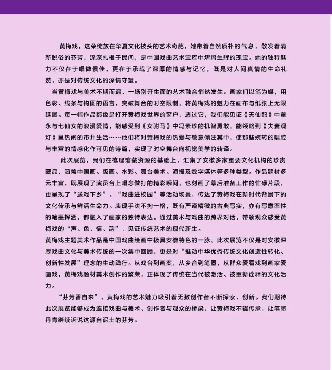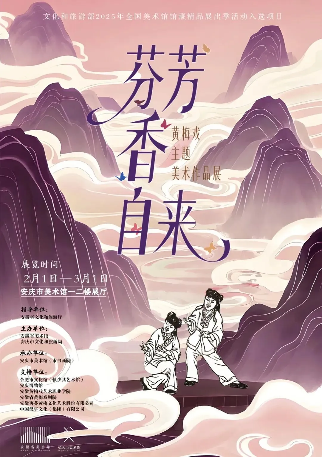 丙午新春,暖意盈城,展览循黄梅戏韵之脉络来到皖江古城—安庆。这里,“一座黄梅城 满城戏中人”,街头巷尾萦绕着熟悉的旋律,空气中也仿佛飘荡着戏韵的芬芳。当丹青墨彩邂逅岁时的喜庆,当舞台韵致融于新春的祥和,这是一场沉浸式文化体验,既是对黄梅戏文化底蕴的深情致敬,亦是传统美学与当代艺术的美好相逢。让我们在这个年味浓郁的时节里,于宜城山水间共赏声色斑斓的艺术盛宴,让黄梅戏的馥郁芬芳,在这座戏曲名城粲然绽放,与佳节同庆,与人民同欢。