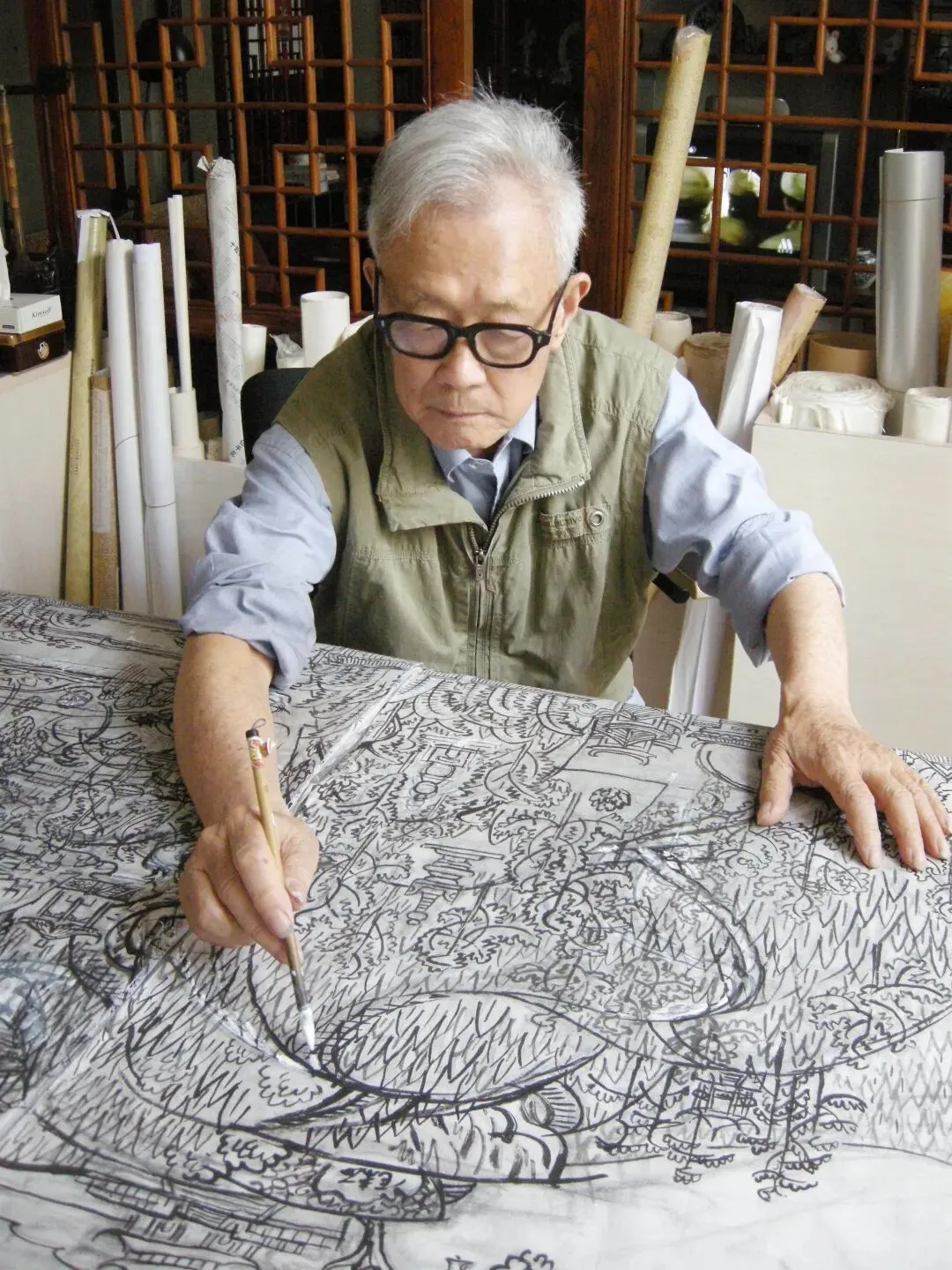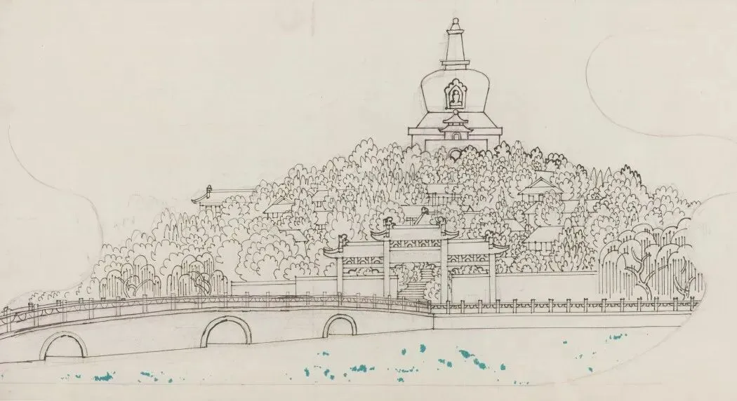 周令钊、陈若菊《古都集粹整体线稿》78.3×111.7cm,硫酸纸,2001年,中央美术学院美术馆藏