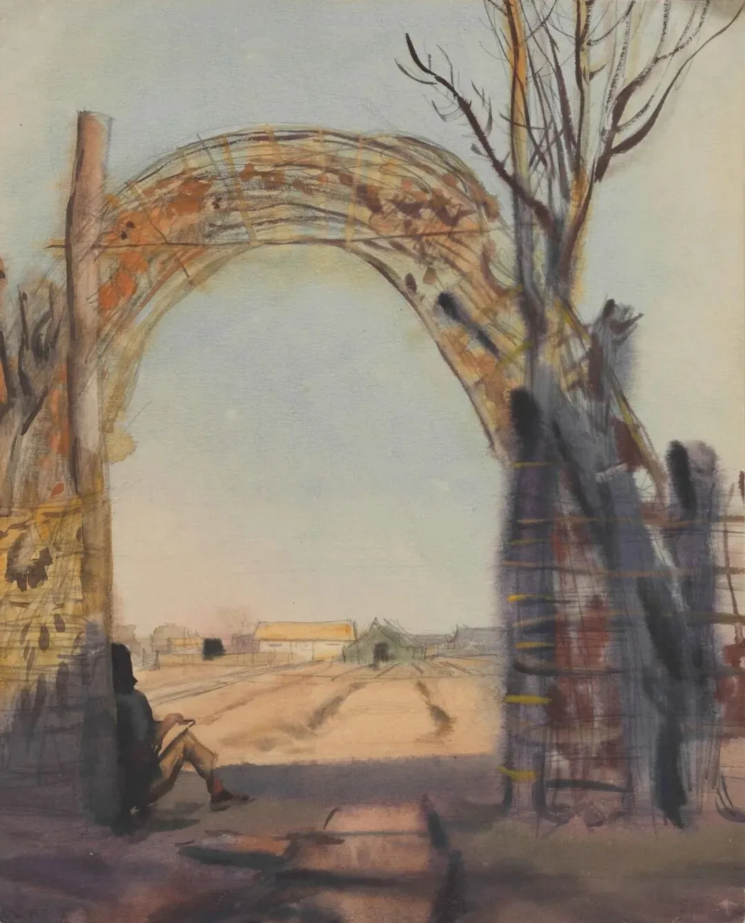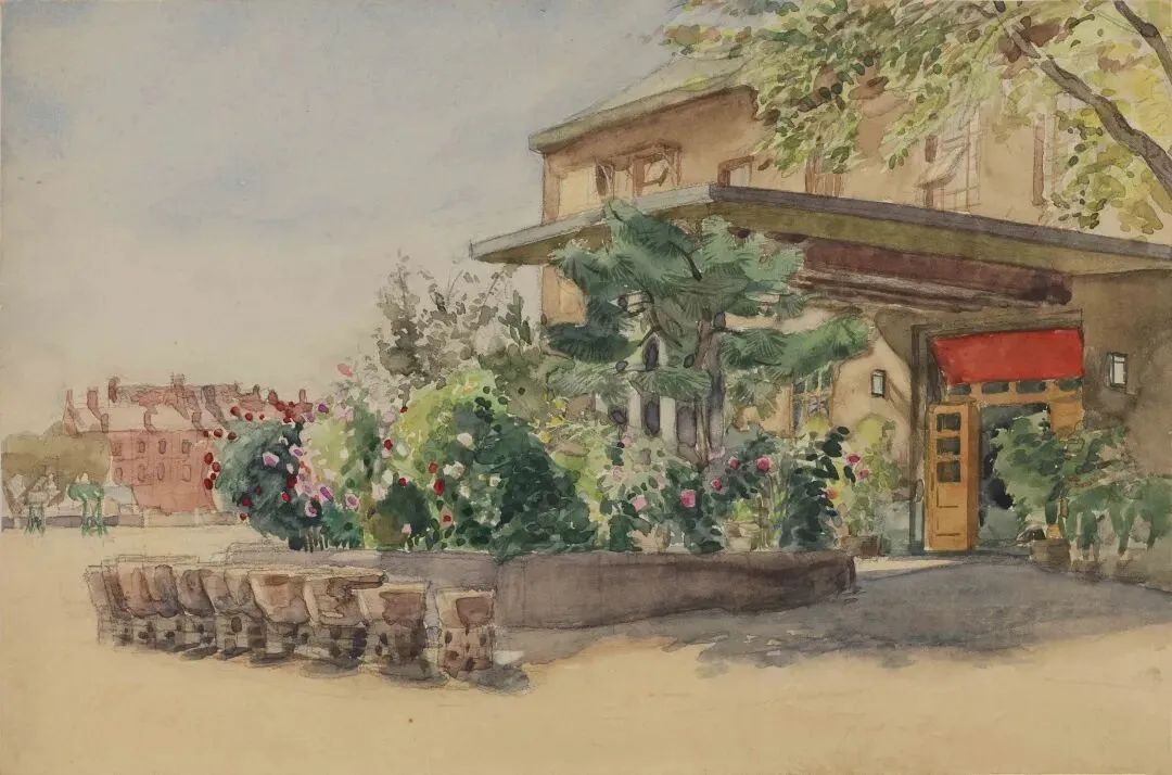 周令钊《老美院门前》21.2×32cm 纸本水彩,1953年,中央美术学院美术馆藏