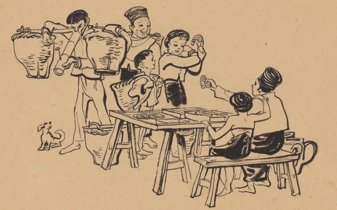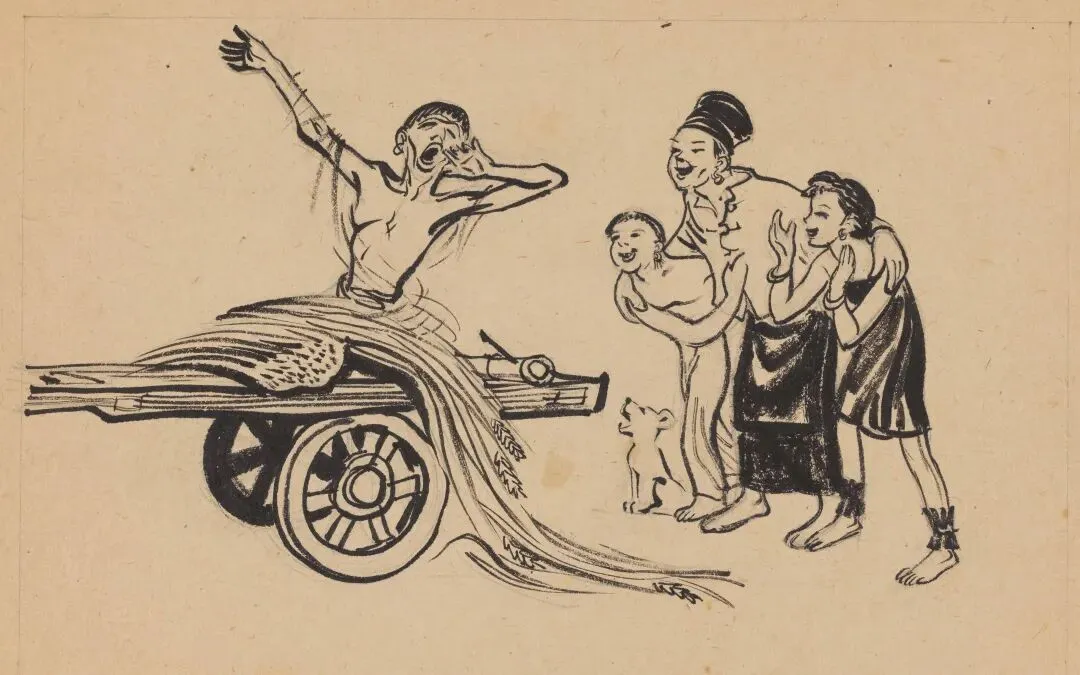周令钊《独臂西施插图》18.7×27.2cm,纸本水墨,1947年,中央美术学院美术馆藏