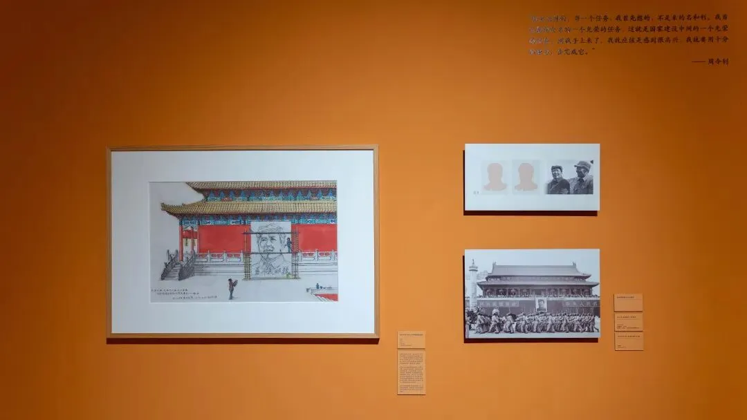 新中国成立之际,周令钊以极大的热忱承担国家重大美术设计任务。他与夫人陈若菊共同绘制开国大典天安门城楼毛泽东主席像,以庄重而生动的形象迎接共和国诞生;参与中华人民共和国国徽、中国人民政治协商会议会徽、少先队队旗设计,主笔设计共青团团旗,以及中国人民解放军“八一勋章”“独立自由勋章”“解放勋章”等重要标识;并担任第二、三、四套人民币票面整体美术设计。他以崭新的视觉语言塑造共和国符号,呈现新中国屹立东方、人民昂扬奋发的时代气象。1949年12月,他加入中国共产党,从此更自觉地把个人艺术追求融入为党、为国家、为人民服务的使命之中。