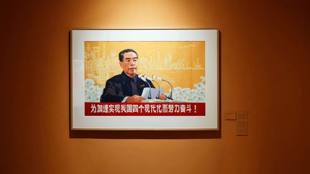 周令钊《为加速实现我国四个现代化而努力奋斗》74.8×120.8cm,纸本水粉,1976年,中央美术学院美术馆藏