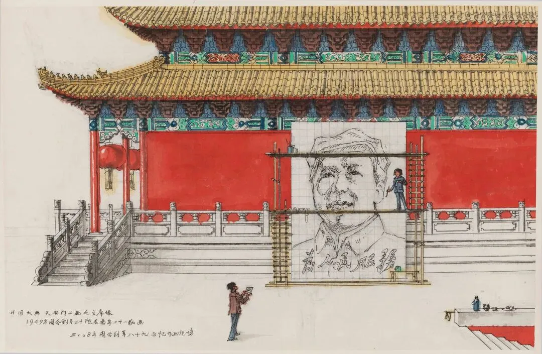 周令钊《回忆开国大典毛主席画像绘制现场》45.8×71cm,纸本水粉,2008年,中央美术学院美术馆藏