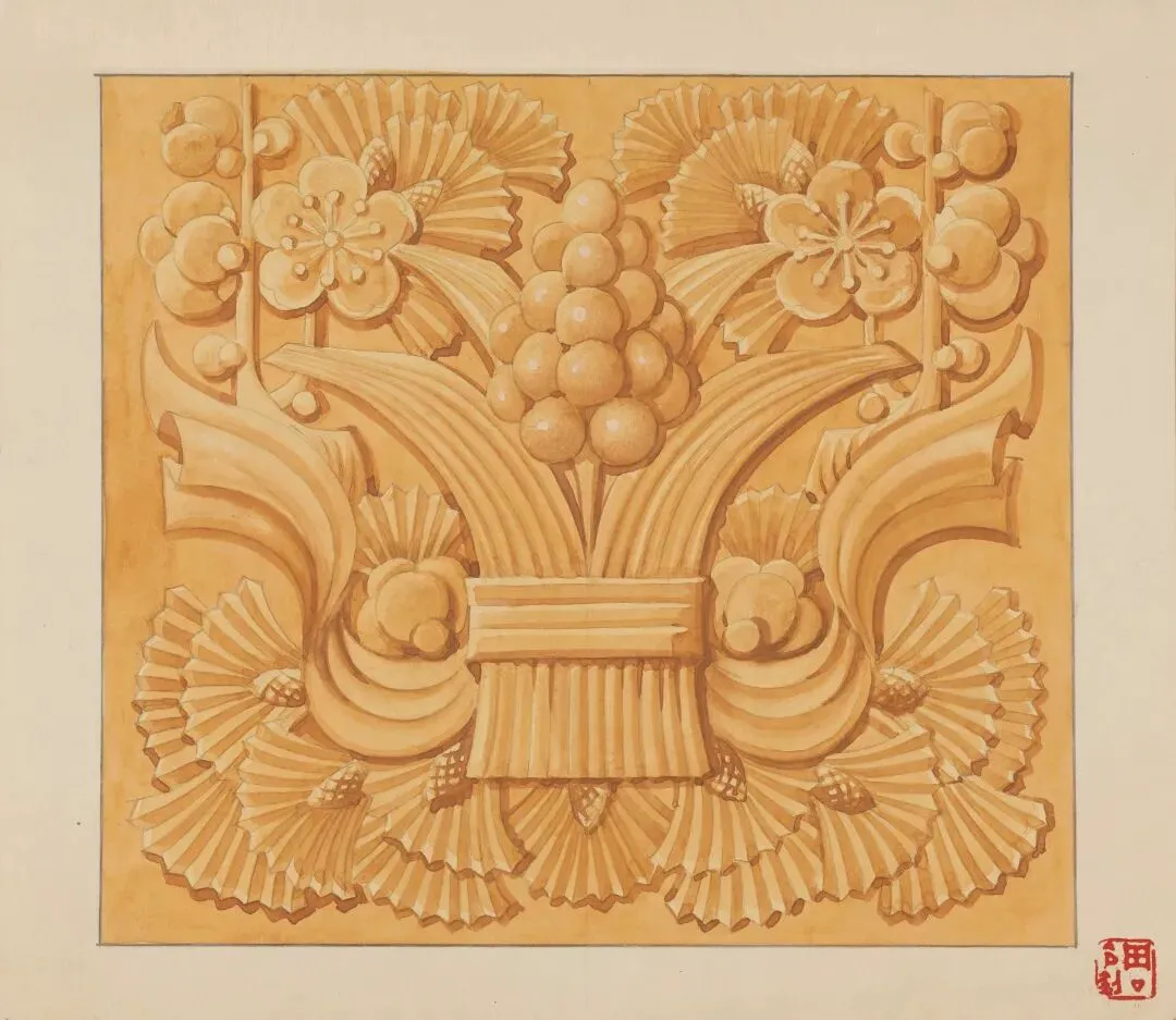 周令钊《毛主席纪念堂建筑装饰图案》26×30.2cm,纸本水粉,1976年,中央美术学院美术馆藏
