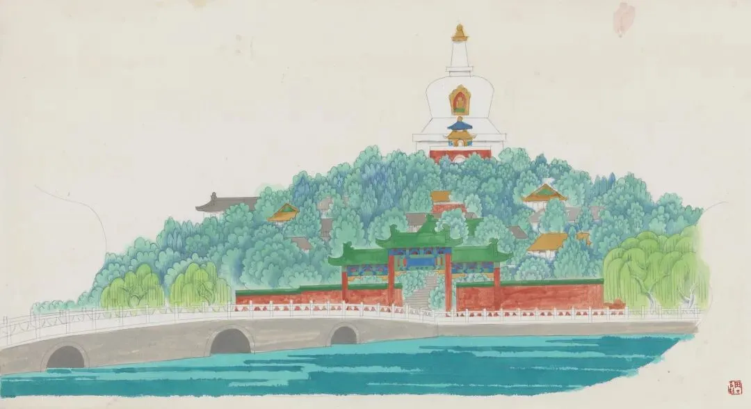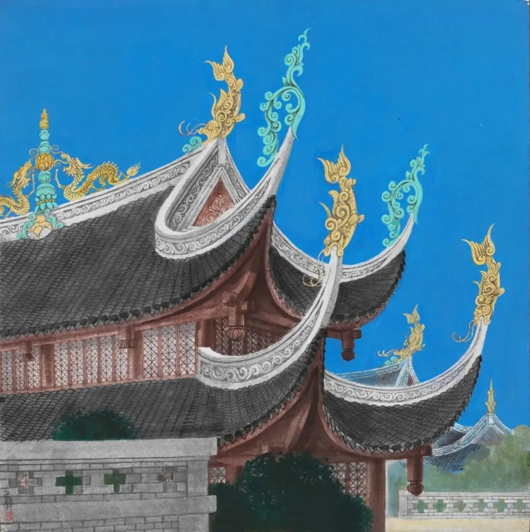 周令钊《贵阳黔灵公园》44.3×44.3cm,纸本丙烯,1984年,中央美术学院美术馆藏