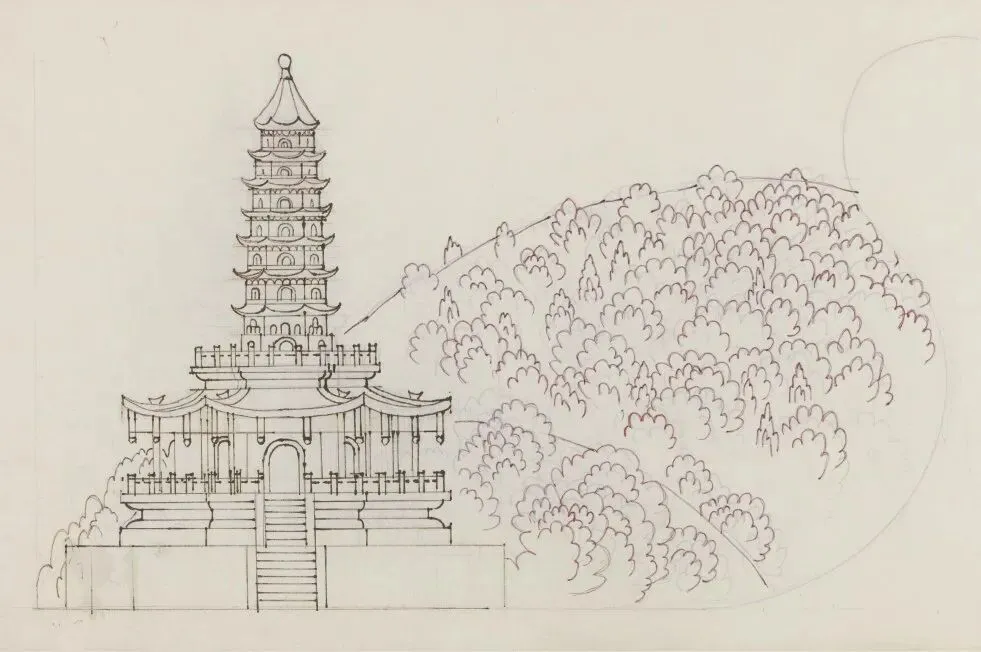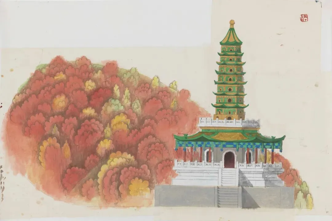 周令钊《黄鹤楼彩色设计终稿》178.5×103.5cm ,纸本彩墨,1984年,中央美术学院美术馆藏