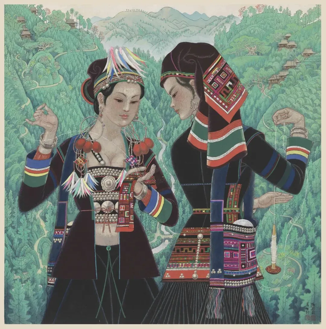 周令钊、陈若菊《山乡锦绣》103×103cm,纸本丙烯,1984年,中央美术学院美术馆藏