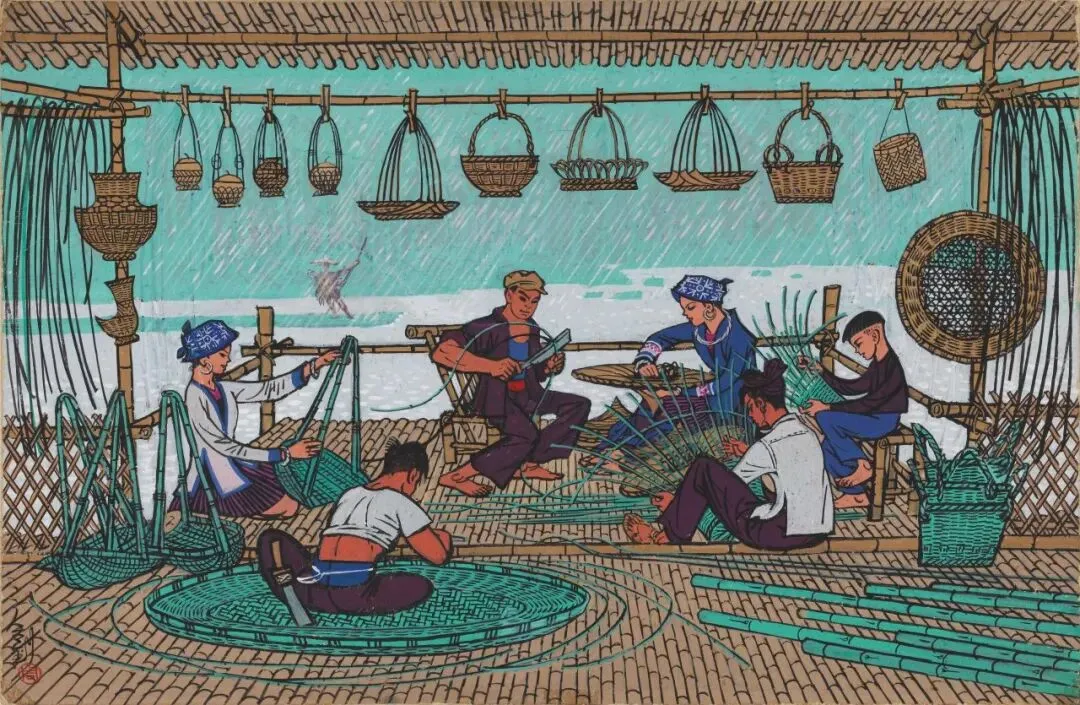 周令钊《织网(惠安组画)》45×44.1cm,纸本丙烯,1984年,中央美术学院美术馆藏