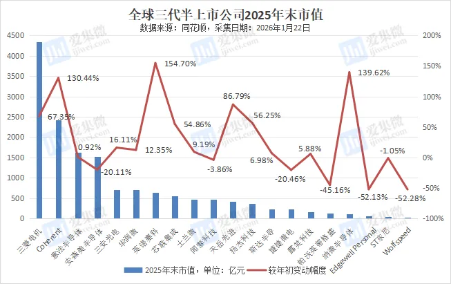 1.全球三代半上市公司市值分化与价值评估:美日仍是主导,中国力量重塑梯队