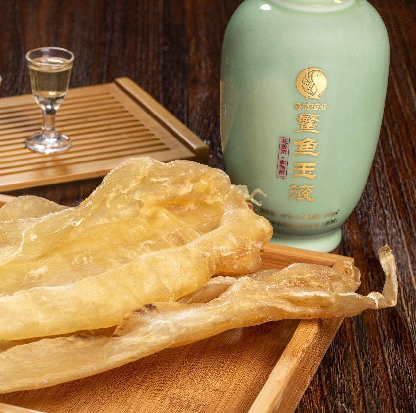花胶酒口感丰富,润滑甘香,酒色如琥珀,晶莹剔透。