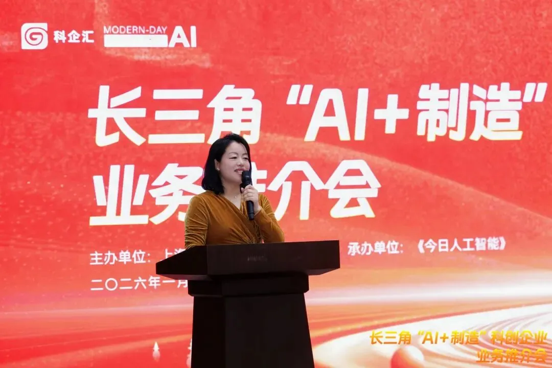 为抢抓AI与制造业深度融合的战略机遇,搭建长三角“AI+制造”科创企业交流对接、资源整合、合作共赢的优质平台,推动区域产业智能化升级,助力新质生产力发展。1月30日,长三角“AI+制造”科创企业业务推介会在上海市闵行区虹桥绿谷广场圆满落幕。本次推介会由上海科企汇科技服务有限公司主办,《今日人工智能》承办,汇聚了百余家长三角地区科创企业,全面展现“AI+制造”领域的创新成果与发展潜力,凝聚区域协同发展共识。